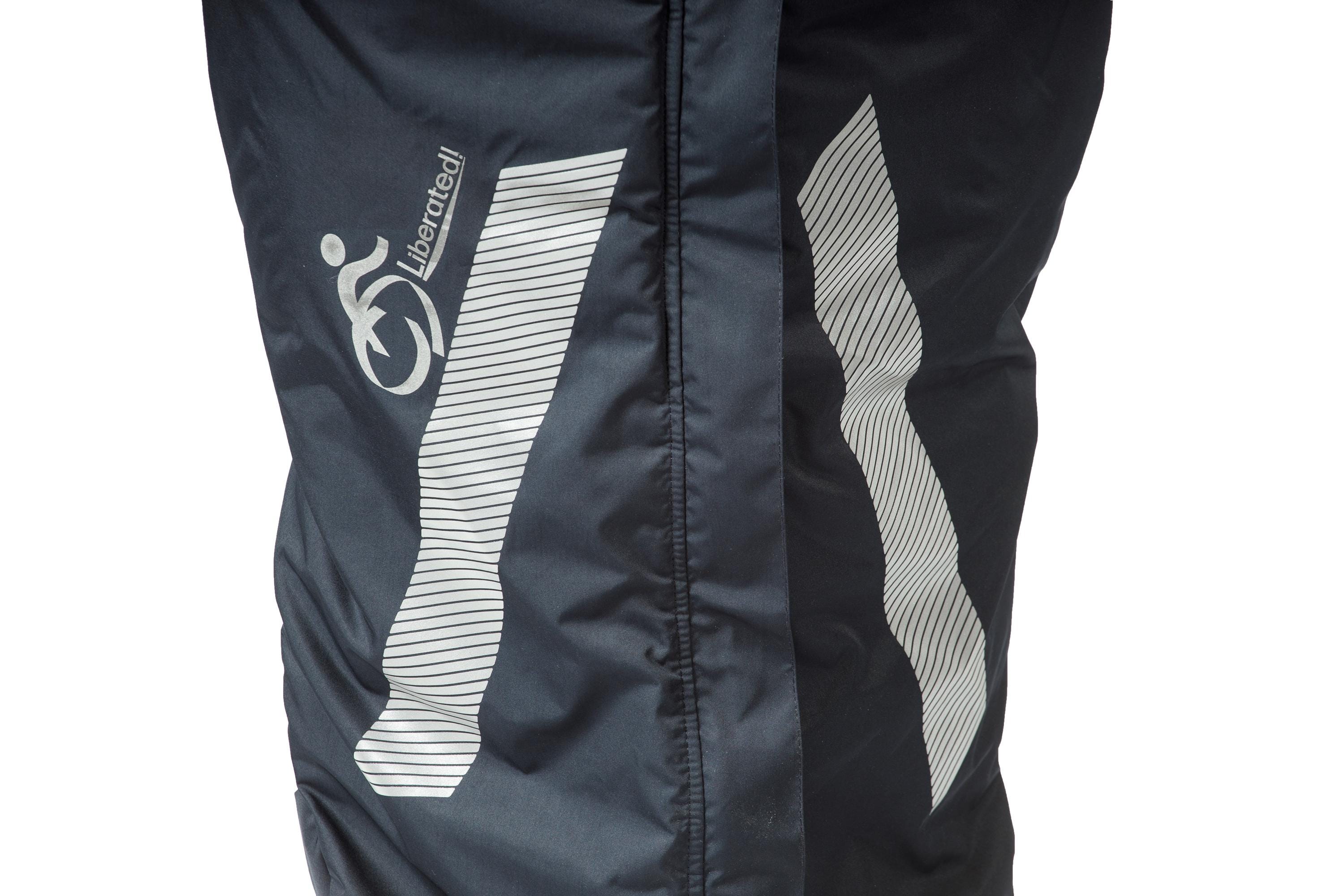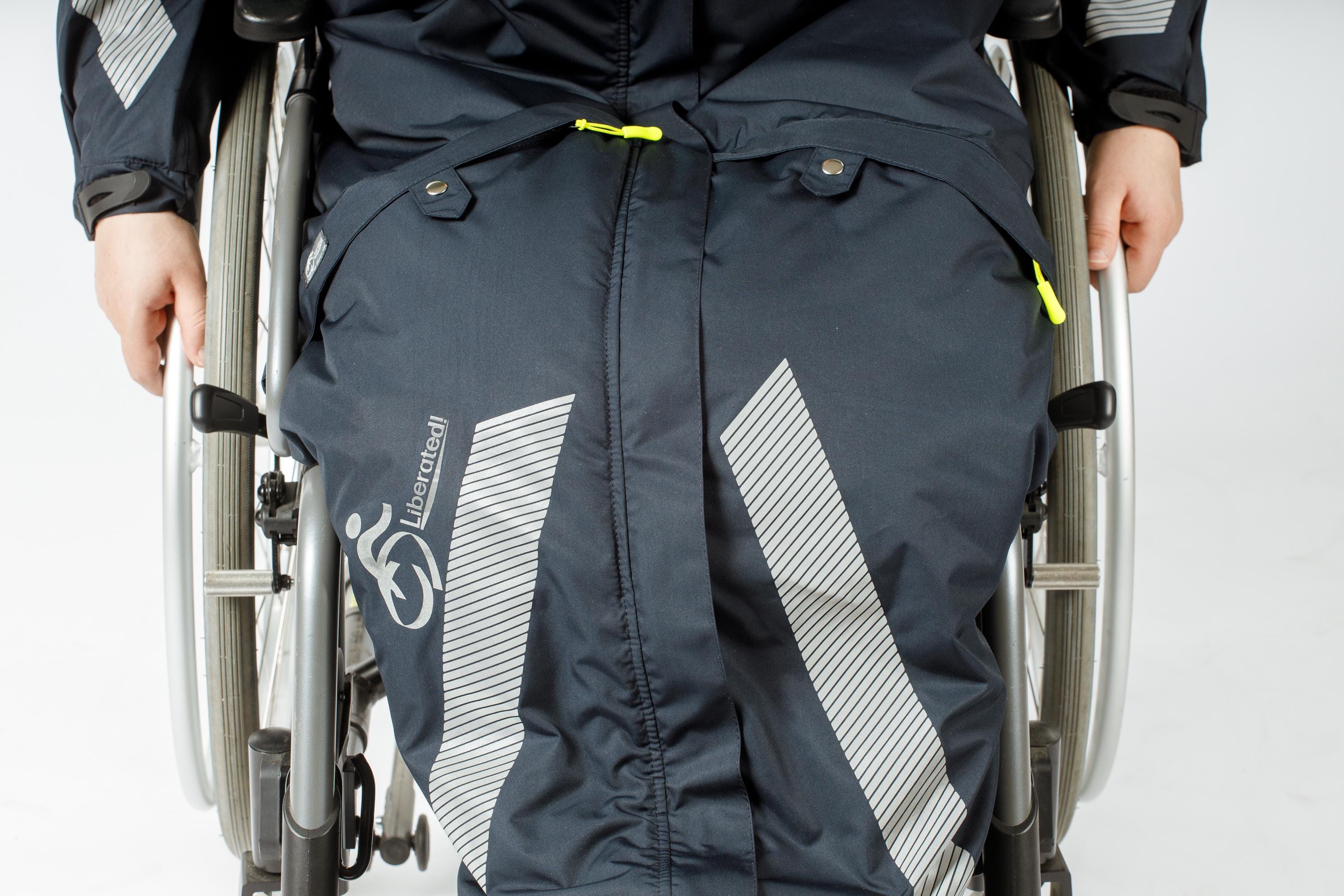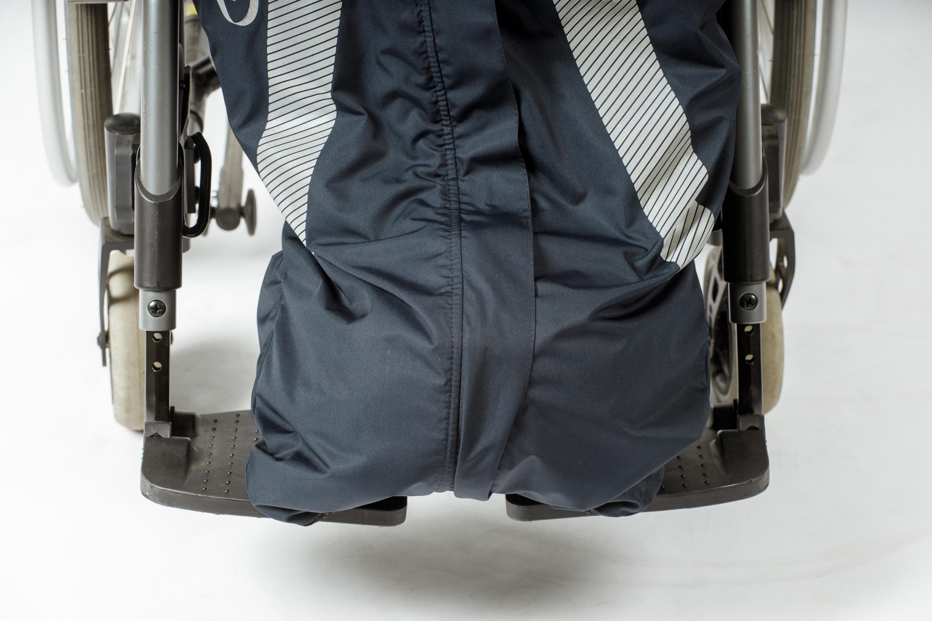 Designed for active wheelchair users, this functional leg and back warmer ensures warmth, dryness, and freedom of movement in cold and windy weather.