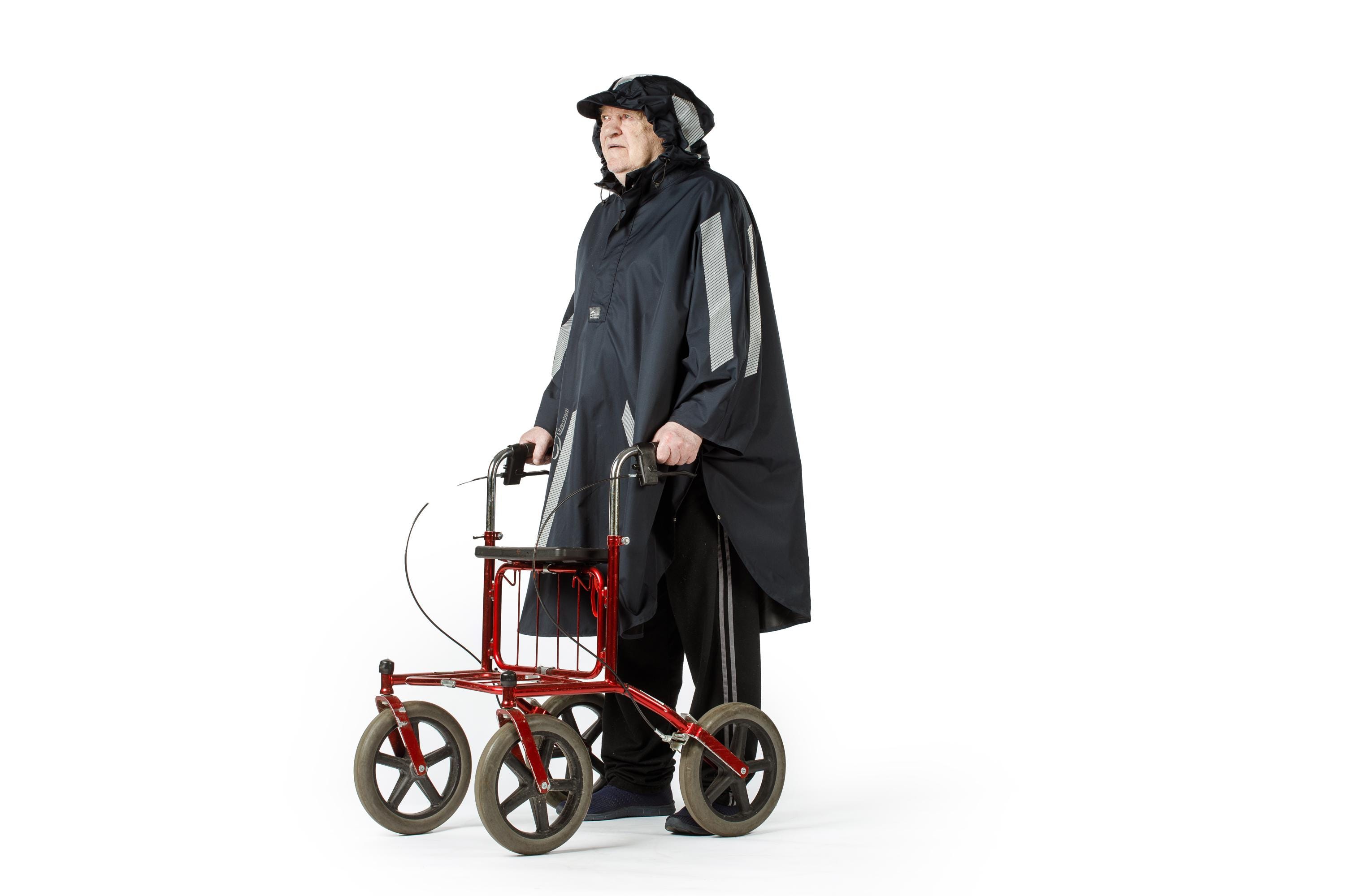 - Unlike fitted coats, the poncho’s loose, one-size design makes it easy to put on and take off — ideal for wheelchair users and assistants.